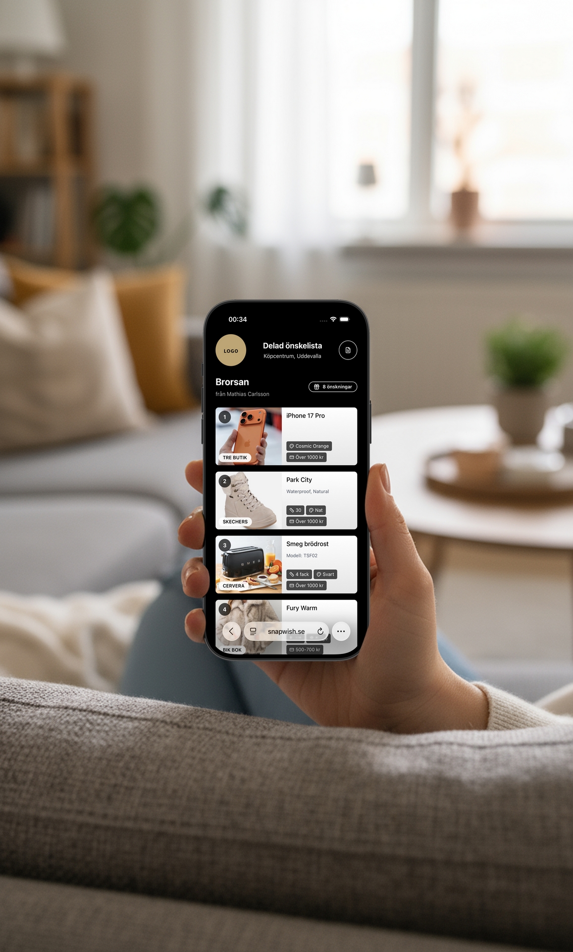 Medan de flesta önskelist-appar idag styr kunderna mot onlinehandel, tar SnapWish shoppingupplevelsen tillbaka till ditt köpcentrum. Här sker allt i den fysiska miljön – kunderna inspireras, fotar produkter direkt i butikerna och bygger önskelistor som de kan dela med familj och vänner. Resultatet? Mer engagemang, mer butiksbesök och en starkare koppling till er handelsplats.